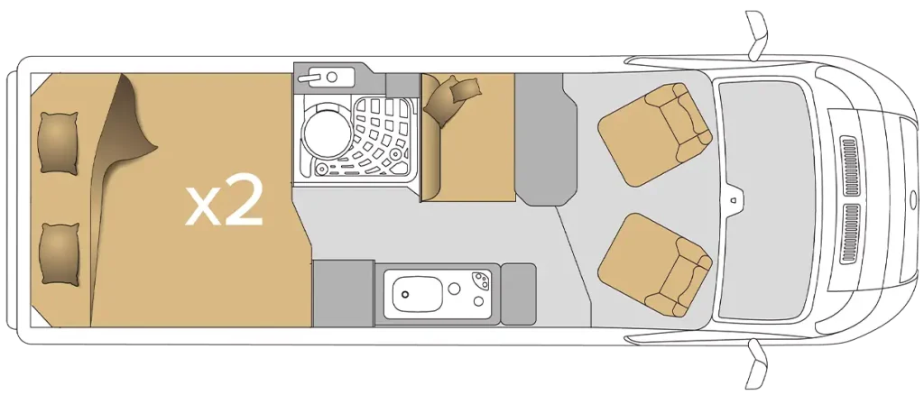 Einige Modelle sind in der All-in-One Variante erhältlich. Die All-in-One-Plus Ausstattung steht ihnen für die gesamte Van-Modellpalette zur Verfügung. Zusätzlich können Sie Ihren Van mit attraktiven Einzeloptionen und praktischen Ausstattungspaketen individuell gestalten – und so genau das Fahrzeug schaffen, das perfekt zu Ihren Reisen und Wünschen passt.