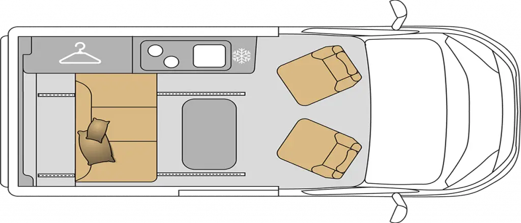 Der Mooveo Campervan 3 besticht hier durch seine nach vorn und hinten verschiebbare Sitzbank, welche auch mit ISO-Fix ausgestattet ist. Das Fahrzeug verfügt über 5 eingetragene Sitzplätze.
